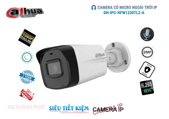 camera DH-IPC-HFW1230TL2-A  là dòng cmaera ip độ phân giải 2 MP đề cập đến công nghệ thu âm to rõ hồng ngoại 30m  và các tính năng nổi bật. Với chuẩn Onvif camera thiết kế hình ảnh sắc nét 2.0 MP mang lại hiệu suất tốt và tiết kiệm chi phí. Có khả năng quan sát ban đêm với hồng ngoại 30m và phát hiện người hoặc phương tiện.