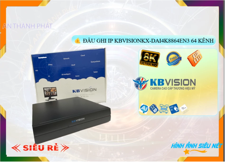 KX-DAi4K8864EN3 Camera KBvision Thương Hiệu Uy Tín Độ Phân Giải 32 MP Sử Dụng Công Nghệ IP Xem Ban Đêm 8 HDD Với Trang Bị Công Nghệ ONVIF Thiết kế Kiểu Đầu Ghi 64 kênh Với Chức Năng Công Nghệ AI Khả 16TB Chất Lượng Chíp xử lý hình ảnh SMD Plus phiên bản mới nhất chuẩn nén Nhận Khuôn Mặt lưu hình ảnh lâu hơn