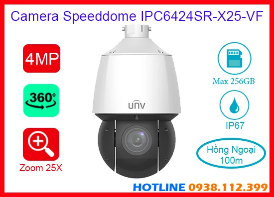 Camera Uniview IPC6424SR-X25-VF là dòng camera speeddome của nhà uniview, với ống kính có độ phân giải 4.0MP cho ra hình ảnh sắc nét, điều gây ấn tượng nhất của IPC6424SR-X25-VF là khả năng giám sát vào ban đêm với đèn hồng ngoại Smart IR với khoảng cách 100m cực kì ấn tượng. Tích hợp các tính năng thông minh ngăn chặn xâm nhập thông minh / đếm người / mật độ đám đông / chụp khuôn mặt (max 40)