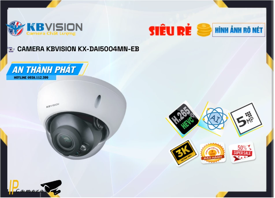 KX-DAi5004MN-EB Camera KBvision Thương Hiệu Uy Tín Độ Phân Giải 5.0 MP Sử Dụng Công Nghệ IP POE Xem Ban Đêm Hồng Ngoại 50m Với Trang Bị Công Nghệ Hồng Ngoại SMD Thiết kế Kiểu Dome Plastic Với Chức Năng Công Nghệ AI Khả Chống Ngược Sáng DWDR 120db Chất Lượng Chíp xử lý hình ảnh Sony STARVIS CMOS phiên bản mới nhất chuẩn nén H.265+/H.265/H.264+/H.264 lưu hình ảnh lâu hơn