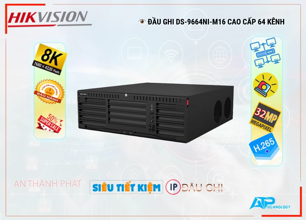 Hikvision DS-9664NI-M16 được trang bị công nghệ tiên tiến giúp ghi hình và truyền dữ liệu một cách ổn định.